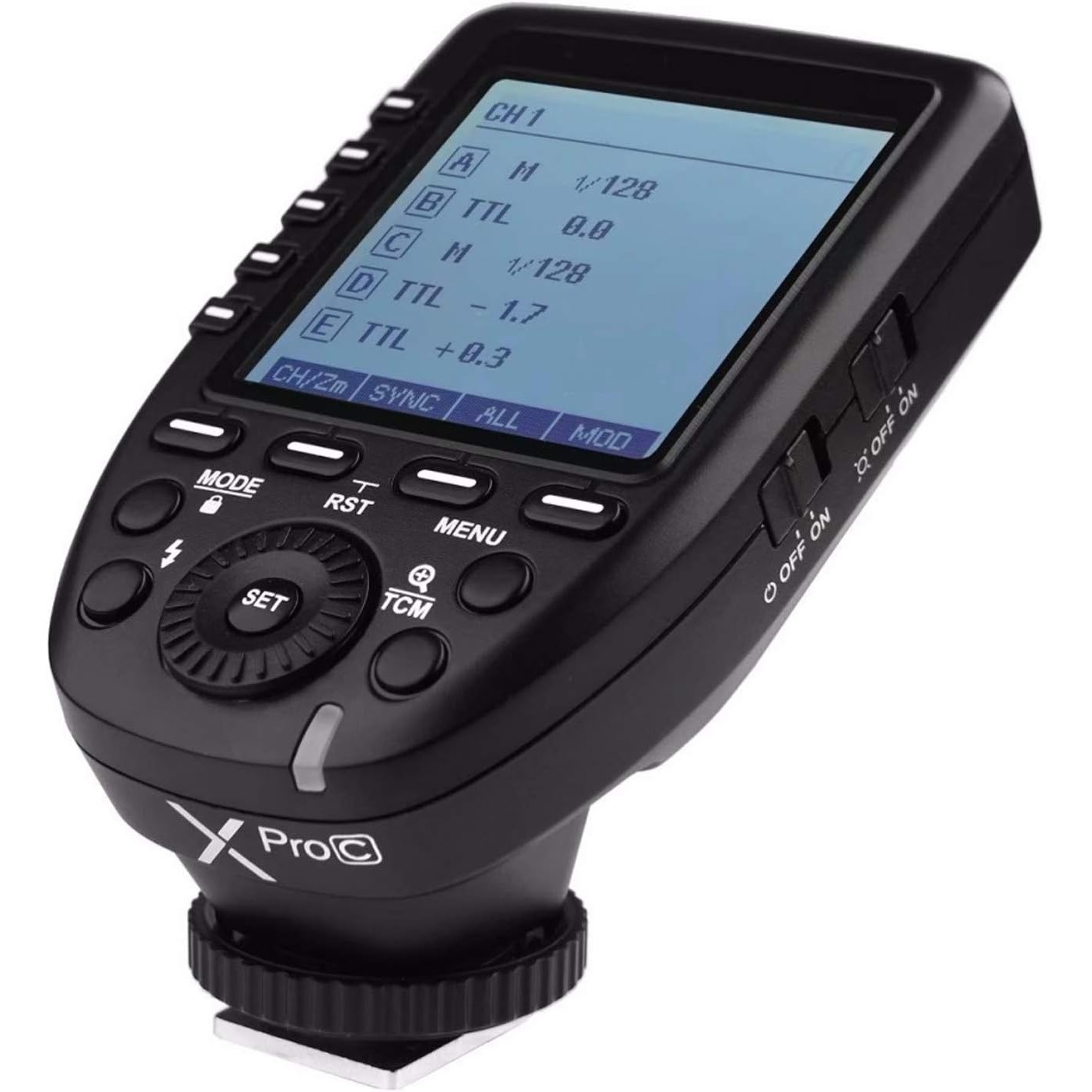 - Usando o sistema de rádio sem fio Godox X de 2,4 GHz, o disparador de flash sem fio TTL XProC pode ser usado para disparar flashes de maneira eficaz e confiável de até 100 metros de distância.
